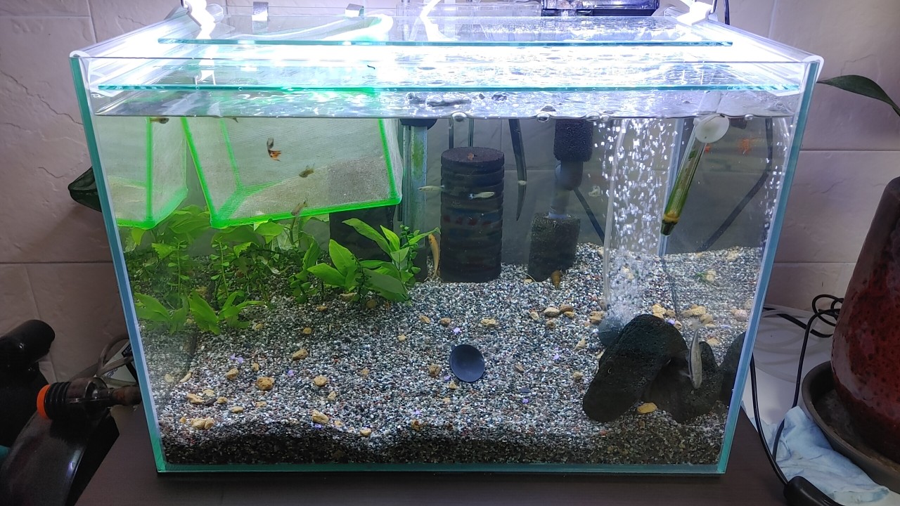 ※ 주의사항 : 기존 어항 물을 절대 버리면 안 됩니다. 새 어항에 그대로 사용할 겁니다. 왜냐하면 박테리아 왕성하게 활성화되어있는 잡힌 물이기 때문입니다.(엄청 중요)