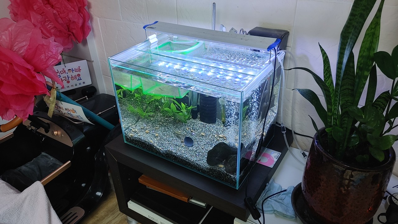 제가 집에서 물생활을 하고 있는데 기존 어항에서 물이 정말 살짝 새고 있어서 새 어항으로 교체하기로 했습니다.