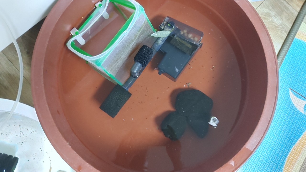 : 최대한 기존 어항의 물 보관하기 위해 추가 대야 필요