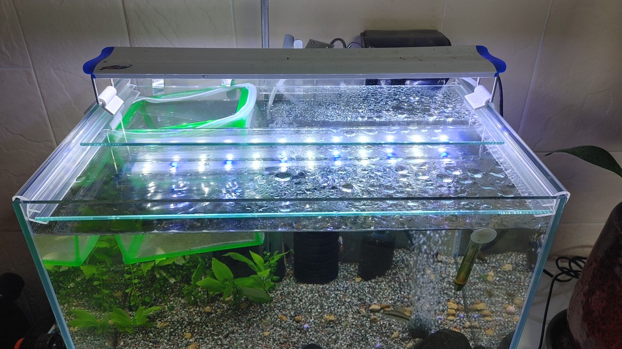 이번 새 어항을 구매하면서 어항 뚜껑이 있으면 좋겠다 싶어서 별도로 어항 뚜껑을 구매해서 설치했습니다. 슬라이드 방식인데 좋았습니다. 물도 안 튀고, 물의 증발도 막아주고, 무엇보다 물고기들이 점프해서 익사하는 사고를 방지할 수 있습니다. 참고하십시오.