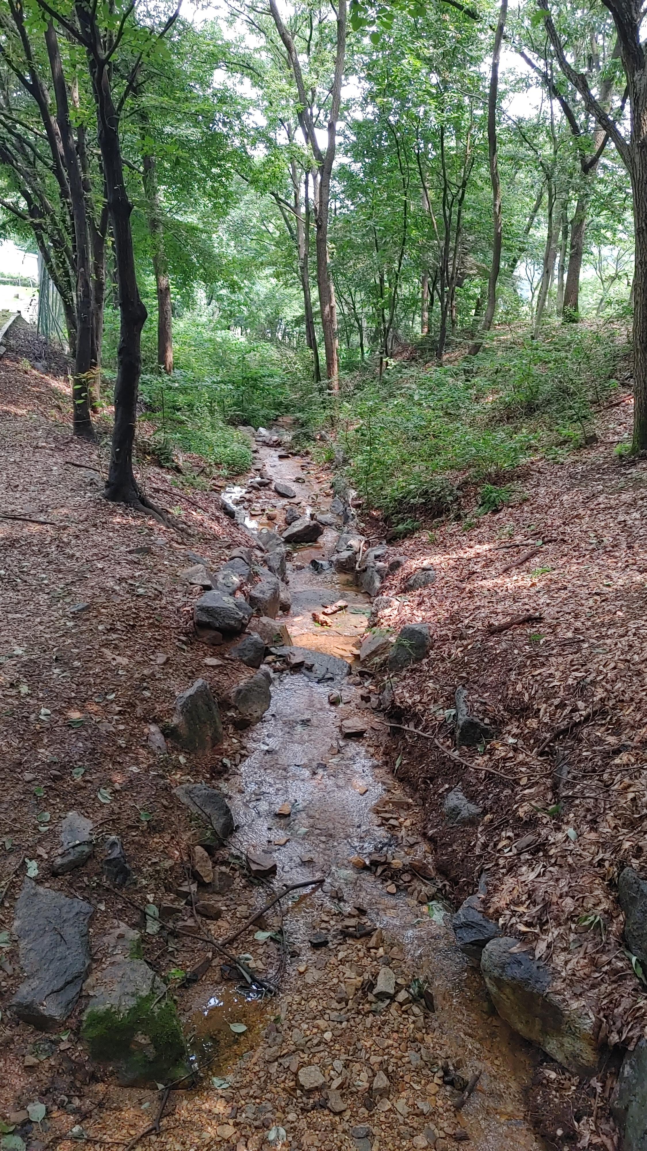 가재가 있었던 장소 주변입니다. 나무숲이라 그늘이 풍부해서 놀기도 좋습니다. 최적의 장소네요! 근데 조금 날파리 같은 게 많았던 거 같습니다. 수질이 뭐 엄청 깨끗하고 차가웠습니다.