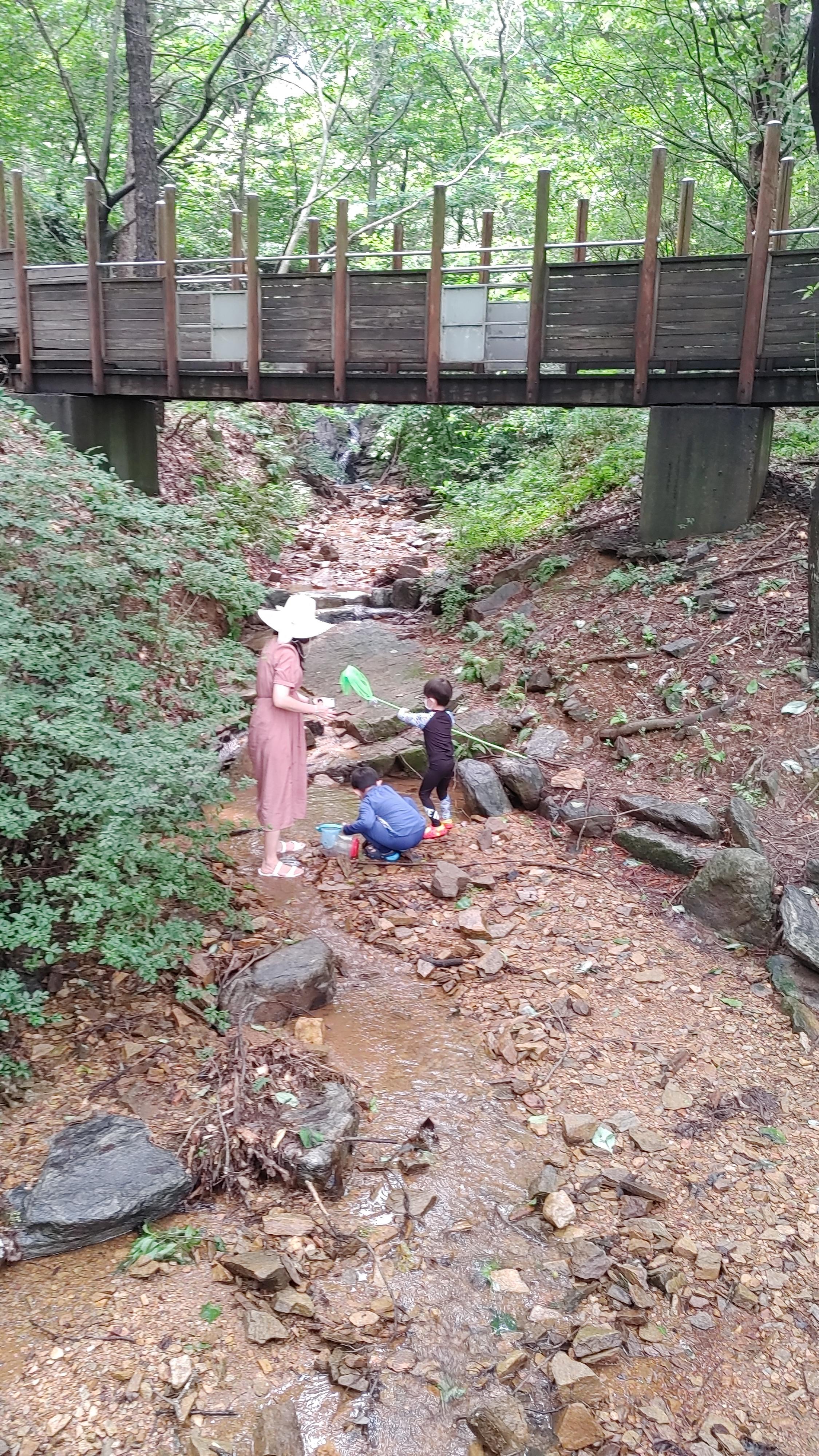 가재랑 한참 구경도 하고, 잡아보기도 하고... 아이들에게 좋은 교육이 되었던 거 같습니다. 잡았던 가재들은 조금 구경하다가 바로 놓아주었습니다. 집에서 키울까도 생각했는데 민물가재를 키우기가 쉽지는 않을 것 같습니다. 차가운 물이어야 하고, 흐르는 물을 조성해줘야 합니다. 먹이도 신경을 써야 하고....