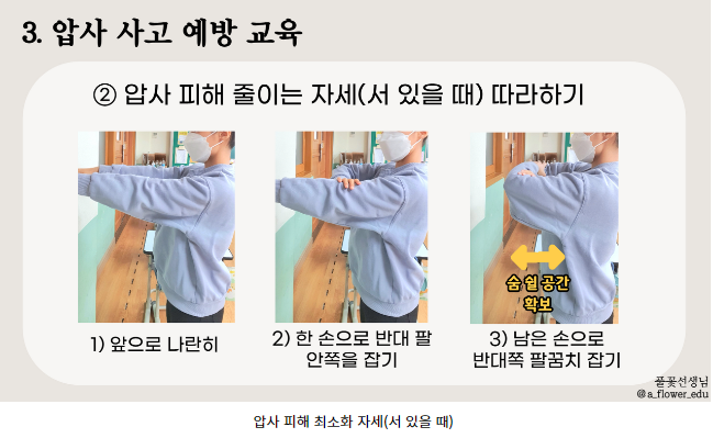 2) 푹신한 가방 등을 이용해 흉부에 직접적인 압박이 가해지지 않도록 올바른 대처 자세를 숙지