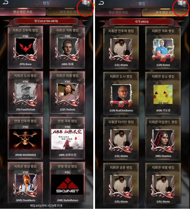 '행성 랭킹 차트', '세계 랭킹 차트' 각각 1개 박스를 클릭하세요!