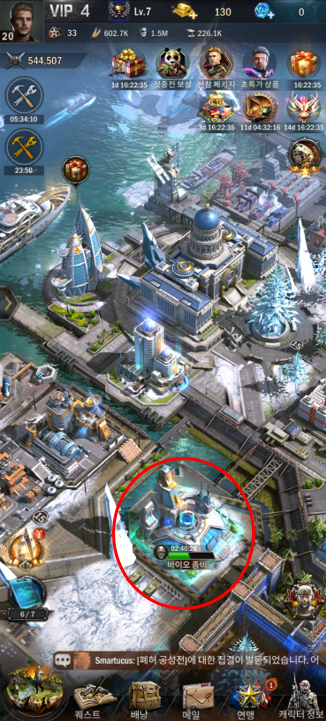바이오 연구소 건물에서 매일 탐색 3회를 제공하는데 탐색 완료 후 아이템 등을 무료로 제공합니다.