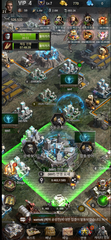 이런 괜찮은 연맹원이 되시면, 연맹원들에게 합동 방어를 받을 수 있어서 타 유저의 공격을 방지할 수 있습니다. 또한 연맹 영지 안에 슈퍼자원을 채집할 수 있는 권한도 있어서 자원도 빠르게 모을 수 있습니다. 오늘 글 쓸 내용 중에 이 부분이 제일 중요합니다.