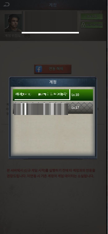 게임에서 캐릭터정보<계정 선택합니다.
