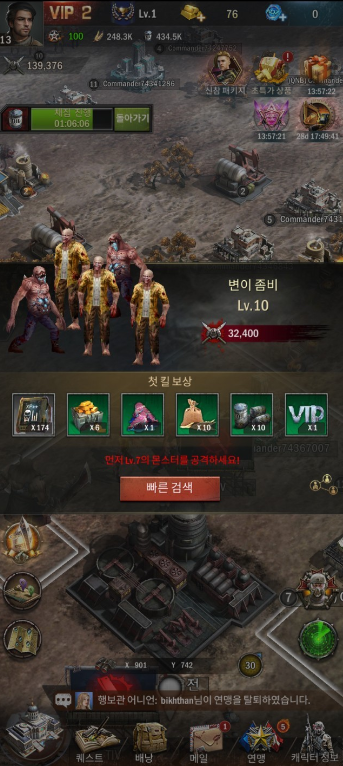 2) 좀비 퇴치 보상