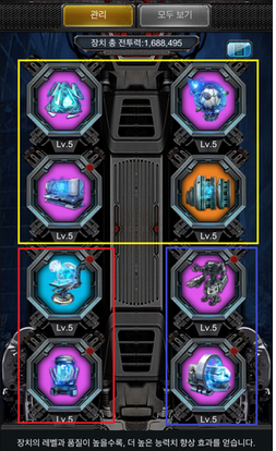 위의 사진에서 노란색 상자 내에 있는 4개의 장치는 "공격력"을 향상시켜주는 장치입니다.