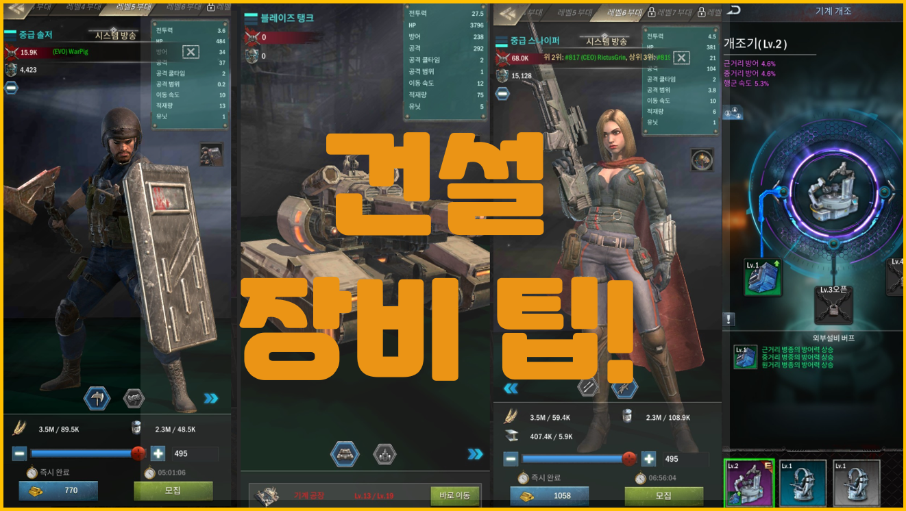 게임 유저가 강해지려면 본인 도시를 강성하게 키워야 합니다. 건물 업그레이드, 장교 육성, 병력 생산, 장비 업그레이드 등등,,, 특히 이 게임을 하는 목적이죠! 상대편과의 전투를 하려면 레벨이 높은 병력들을 모집해야 합니다.