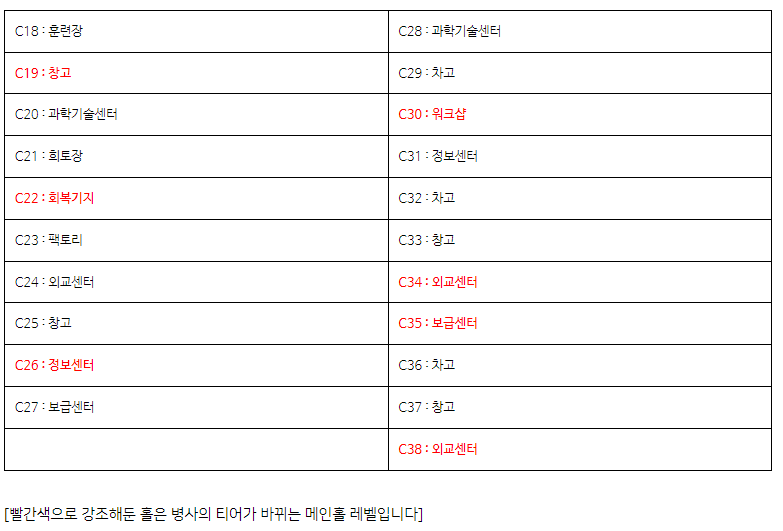 해당 건물들의 업그레이드는 시간이 오래 걸리기 때문에 홀 업그레이드 시 티어가 바뀔때마다 우선적으로 업그레이드하시기 바랍니다.