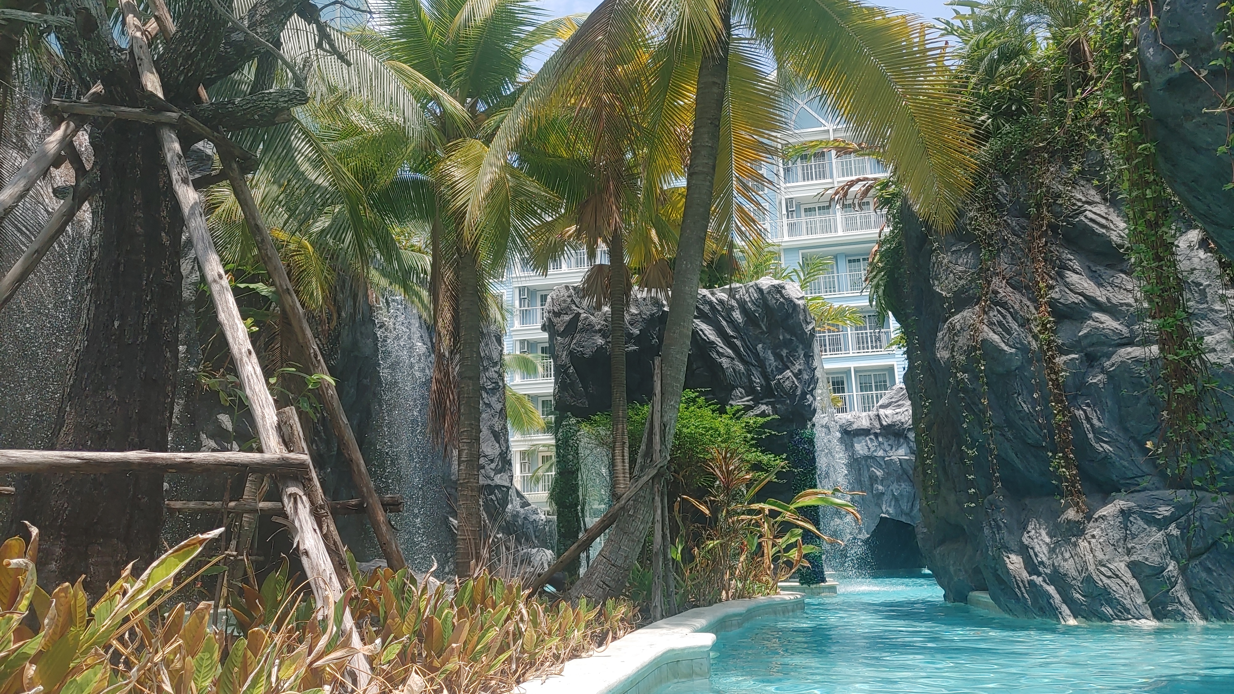 야외수영장이 있는데 숙소 베란다를 나가자마자 수영장입니다. 모든 객실이 이 수영장으로 연결되어 있습니다. 대박입니다. 방에서 나가면 바로 수영장... 수영장이 워터파크 수준입니다. 편집하지 않은 영상으로 보여드립니다.