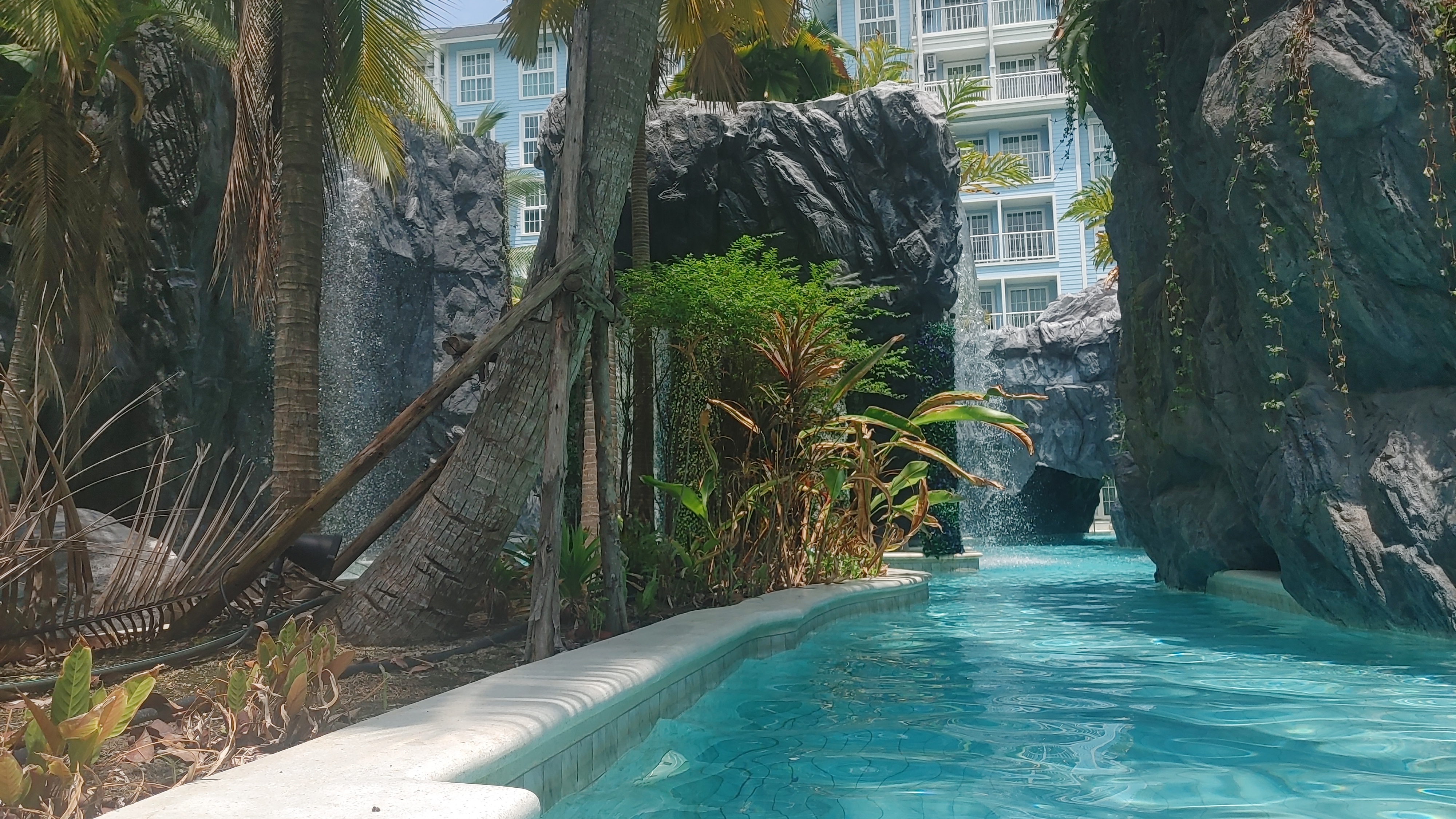 다른 리조트 동에도 수영장이 있습니다. 여기 위에 워터파크 수준은 아니지만, 아이들이 놀기엔 딱 좋은 수영장이 있습니다. 앙증맞은 미끄럼틀도 있습니다. 여기도 아쉽지 않게 폭포가 있습니다.