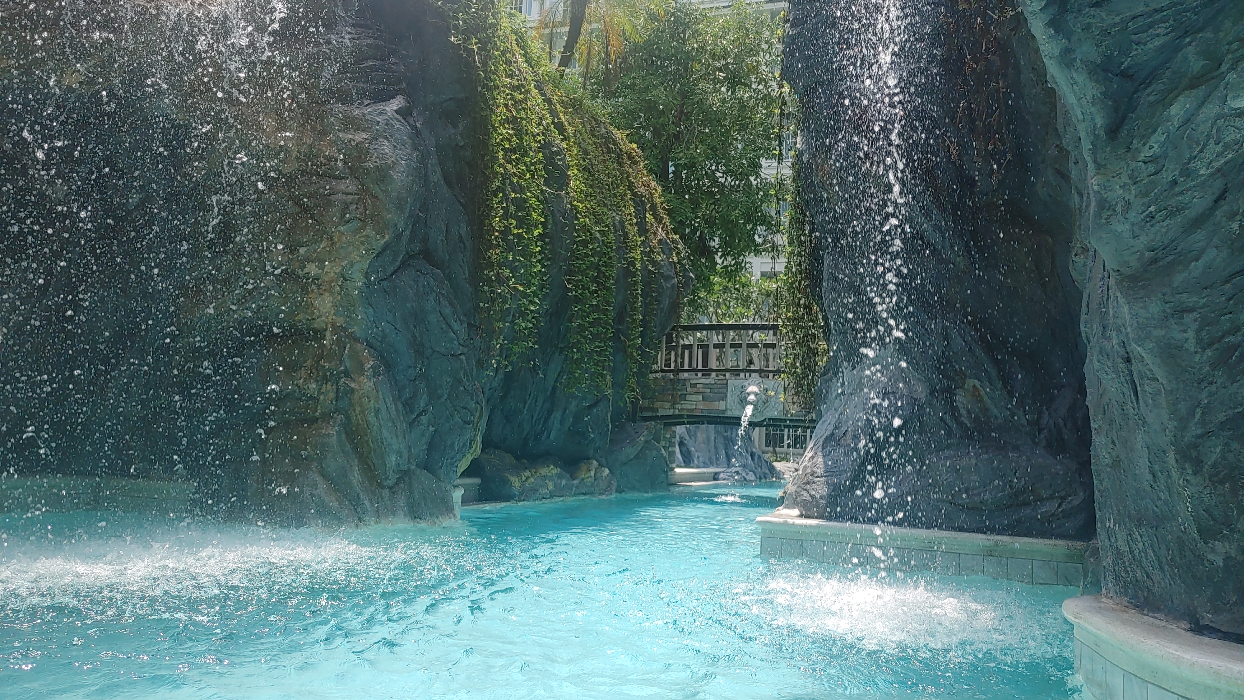 참 실감 나게 조경을 꾸며놨습니다. 인공폭포로 떨어지는 물줄기 밑에 있으면 안마가 될 정도로 속도가 물의 양이 어마어마하게 강하고 많습니다.