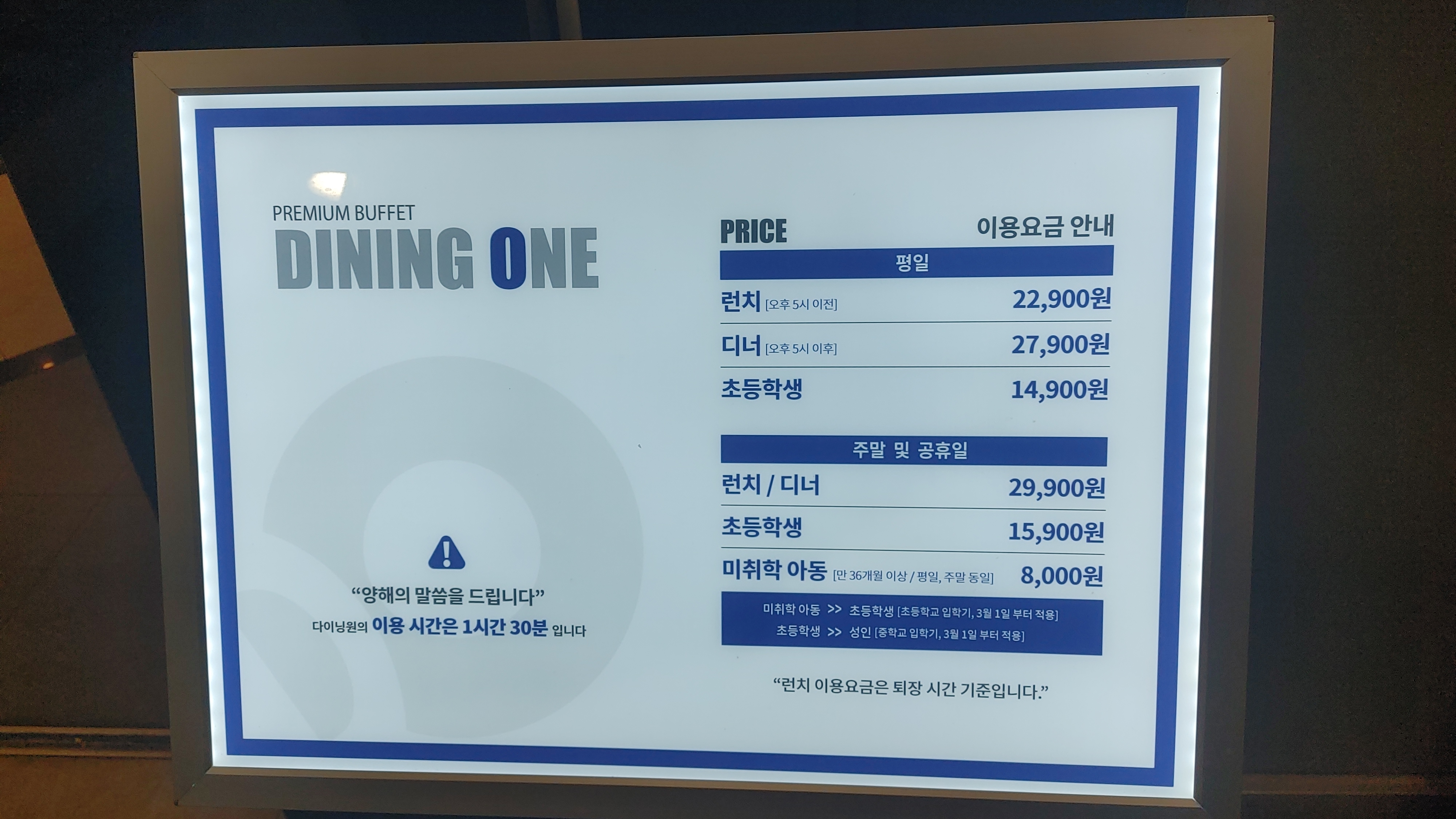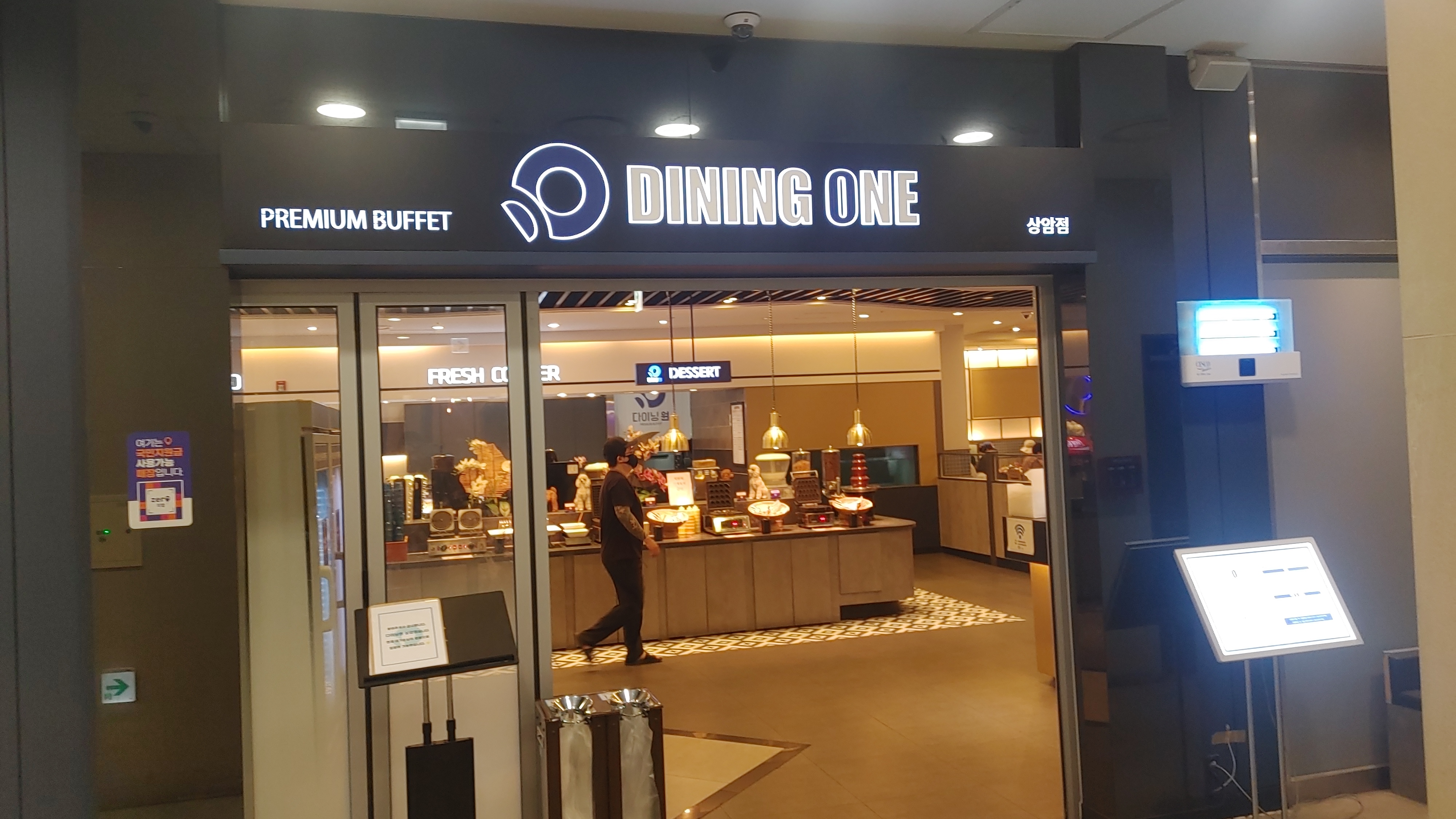"다이닝원"이란 곳입니다. "쿠우쿠우" 초밥 전문뷔페가 있었는데, 그곳에서 상호만 바뀐 곳입니다. 옛날 쿠우쿠우에서 조금 업그레이드된 곳이라 생각됩니다.