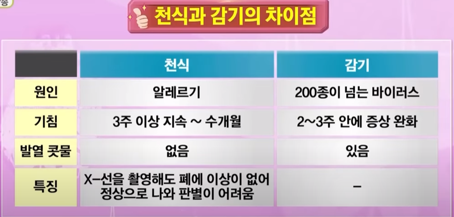 1) 천식과 감기의 차이점![]() <출처:엄지의제왕> 2) 천식의 완치 가능성은? → 결론적으로 완치가 어렵습니다. 알레르기를 멀리하고 꾸준한 약을 통해 조절 및 관리 가능, 증상이 없을 때도 약 중단은 하지 마시고 소량이라도 꾸준하게 사용하시기를 추천드립니다. |