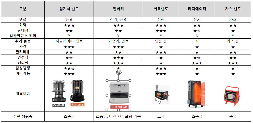 이 글을 통해 동계캠핑을 하고 싶은 분들에게 난로 선택에 도움을 드리고자
