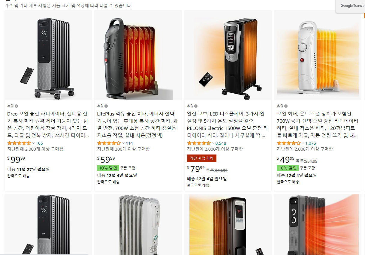 아마존에서 "oil heater"라고 치면 나오는 제품들 구매하시면 될 것 같습니다. 가격은 다양합니다.