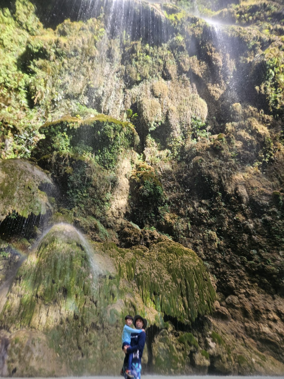 가족들이 폭포보다 닥터피쉬가 있는 물에 발을 우선 먼저 담급니다. 석회물인 것 같은데 수질은 나쁜 것 같지 않습니다. 발을 담그자마자 물고기가 엄청 달라붙습니다. 한국에서 체험한 닥터피시보다 엄청난 양의 물고기가 시커먼케 발을 감싸네요!