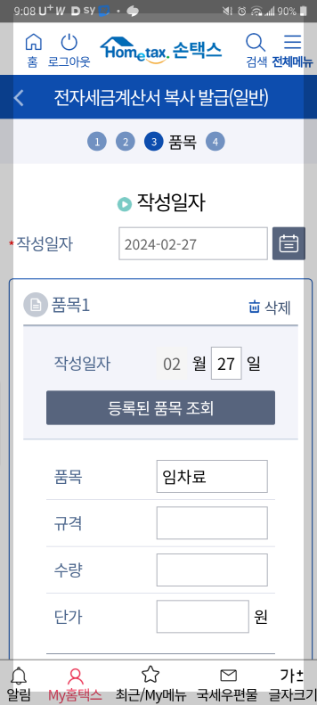 이전에 발급했던 세금계산서 정보를 조회하고 선택합니다.