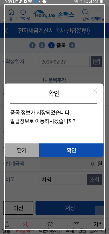 지문 인식을 하면 전자세금계산서 발급됩니다.(공인인증서 없이)