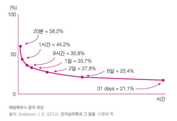 공부방법론에서 복습을 강조하는 에빙하우스의 망각 곡선의 예시를 중요하게 생각하는 사람이 많은데, 레미니센스 효과처럼 자기주도학습을 실행하고 시간이 지났을 때 더 기억이 강화되는 방법으로 공부를 실행하는 것입니다. 해마에게 정리할 시간을 주는 것입니다.