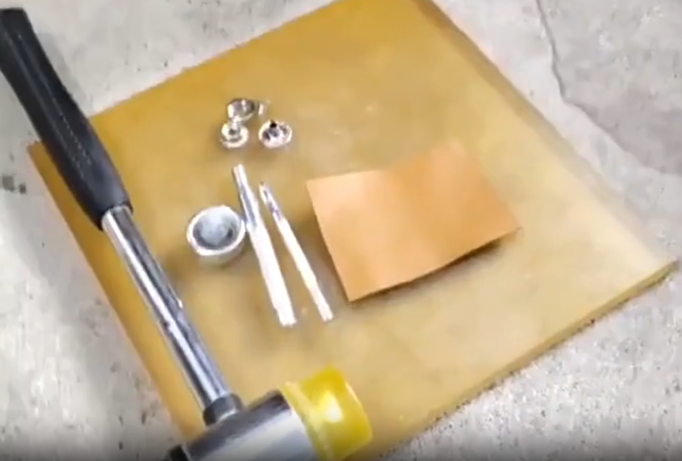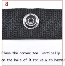 6. 볼록도구를 수컷 단추에 올려놓고 망치질합니다.