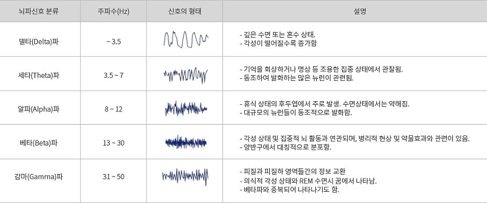 뇌파 종류와 기능(델타파, 세타파, 알파파, 베타파, 감마파)