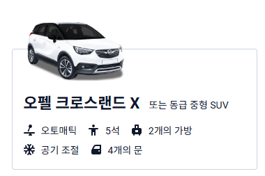 중소형 SUV를 총 4일에 204,041원에 예약했습니다.(보험은 전체 보장계약함.)