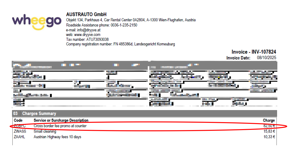 렌트카 업체에서 메일로 계약서도 보내줬는데 명확하게 오스트리아 비넷만 포함되어 있었습니다. 거참!!!