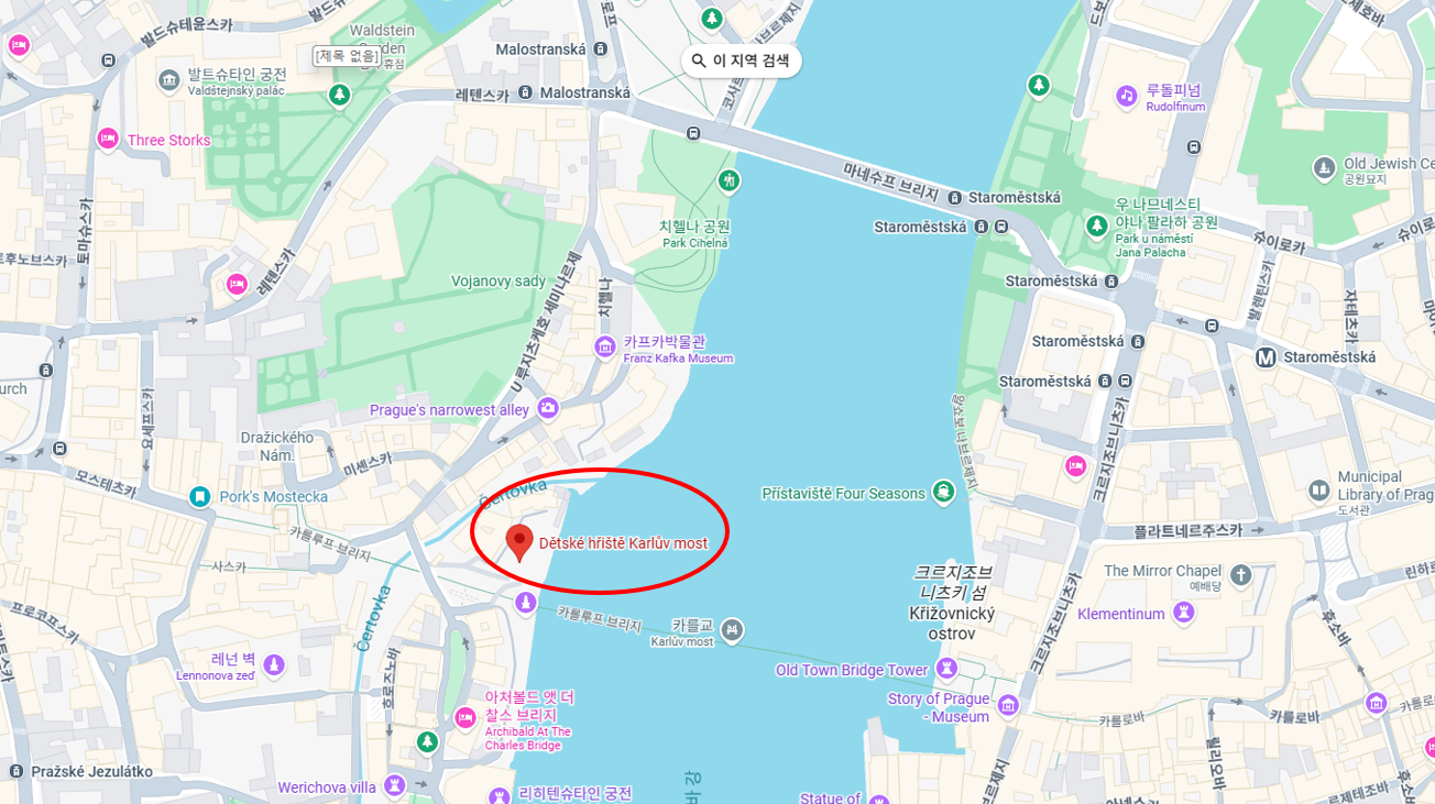 구글지도 어플에서 "Dětské hřiště Karlův most"으로 검색하시면 됩니다.