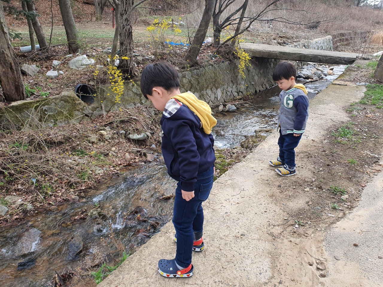 내려가셔서 돌 밑을 들춰보시면 다슬기들이 많이 있을 겁니다. 뭐 조금한 물고기들이 있어서 잠깐 물고기 잡이 놀이 하셔도 좋을 것 같습니다. 물은 깨끗했던거 같습니다. 뭐 근처에는 관리가 안되서 쓰레기들이 좀 있어서 지저분해보이는 것 같지만... 수질은 괜찮아보였습니다.