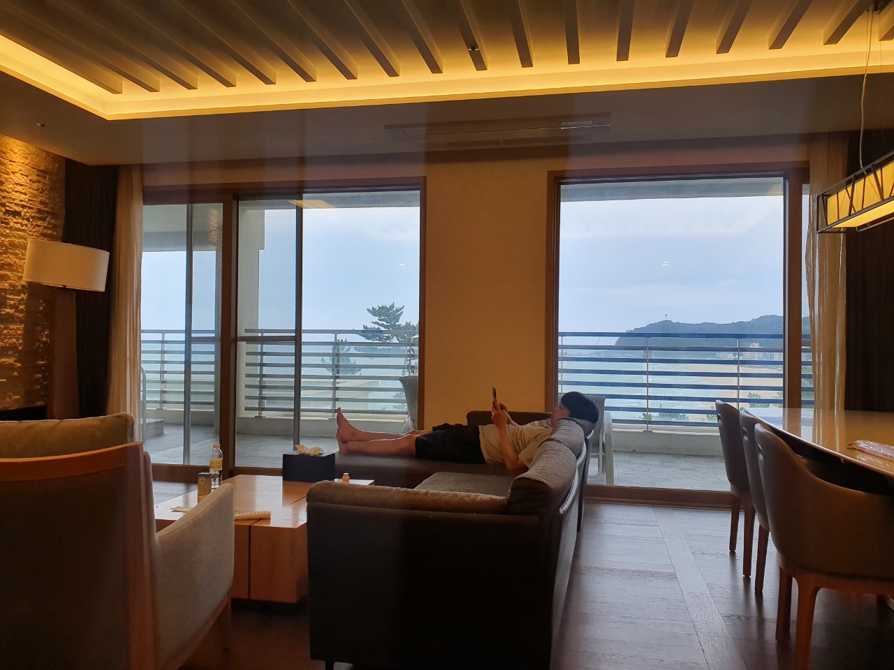 쏠비치 리조트에 부대시설도 많고 이쁜 산책길이 있는데 속된말로 내부가 너무 좋아서 밖에 안나가고 객실 내부에서만 즐겼던거 같습니다. 내부에서 다 보이니까요! 저렇게 누워서 편안하게 이 시간을 즐겨봅니다.