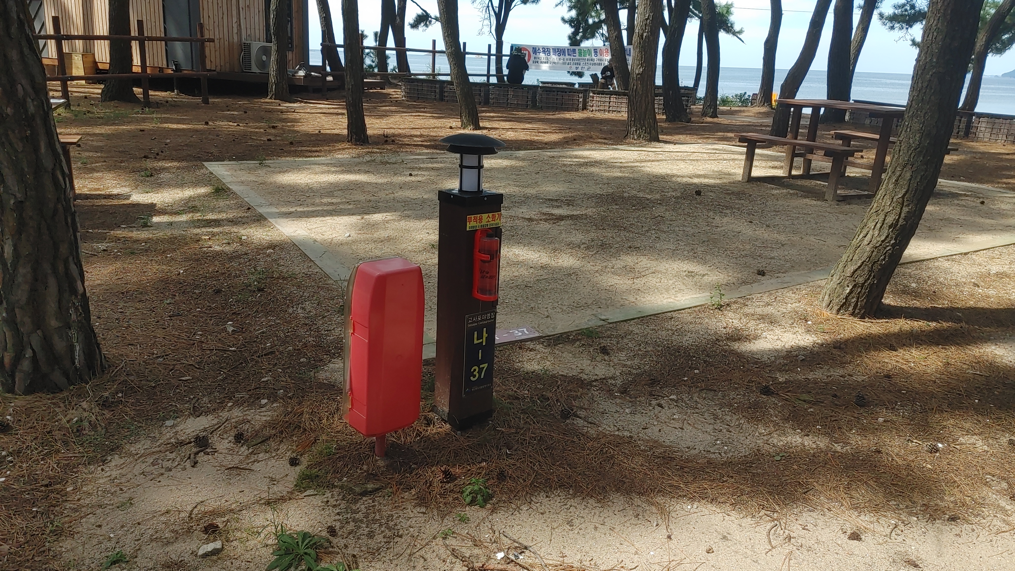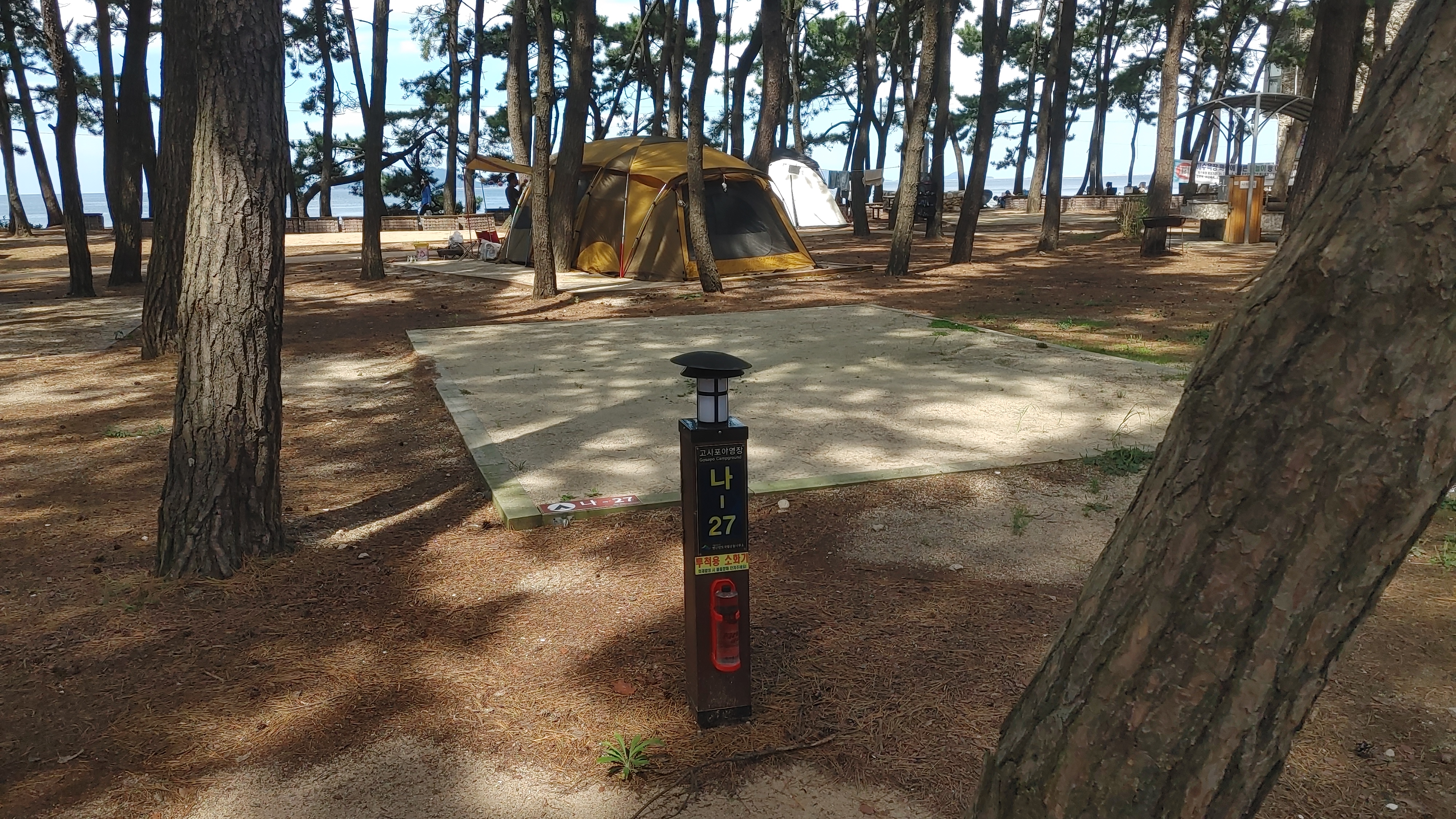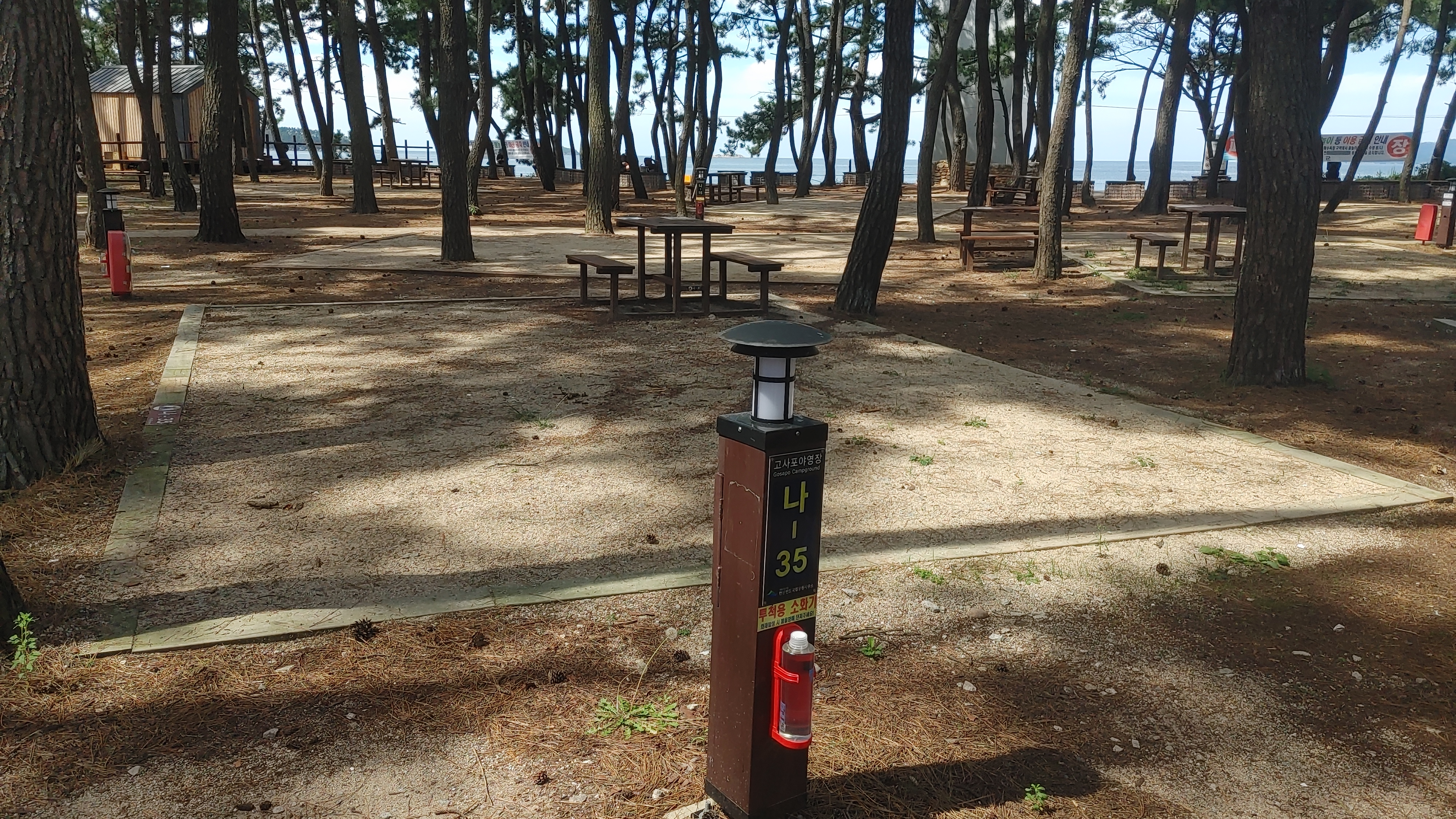 이 곳은 해수욕장 근처고 캠핑장에는 어마하게 많은 소나무로 이루어진 장소입니다. 그만큼 소나무가 많아서 사이트 중앙에 소나무가 있다면 타프 치기가 영 어려운 장소이기도 합니다.