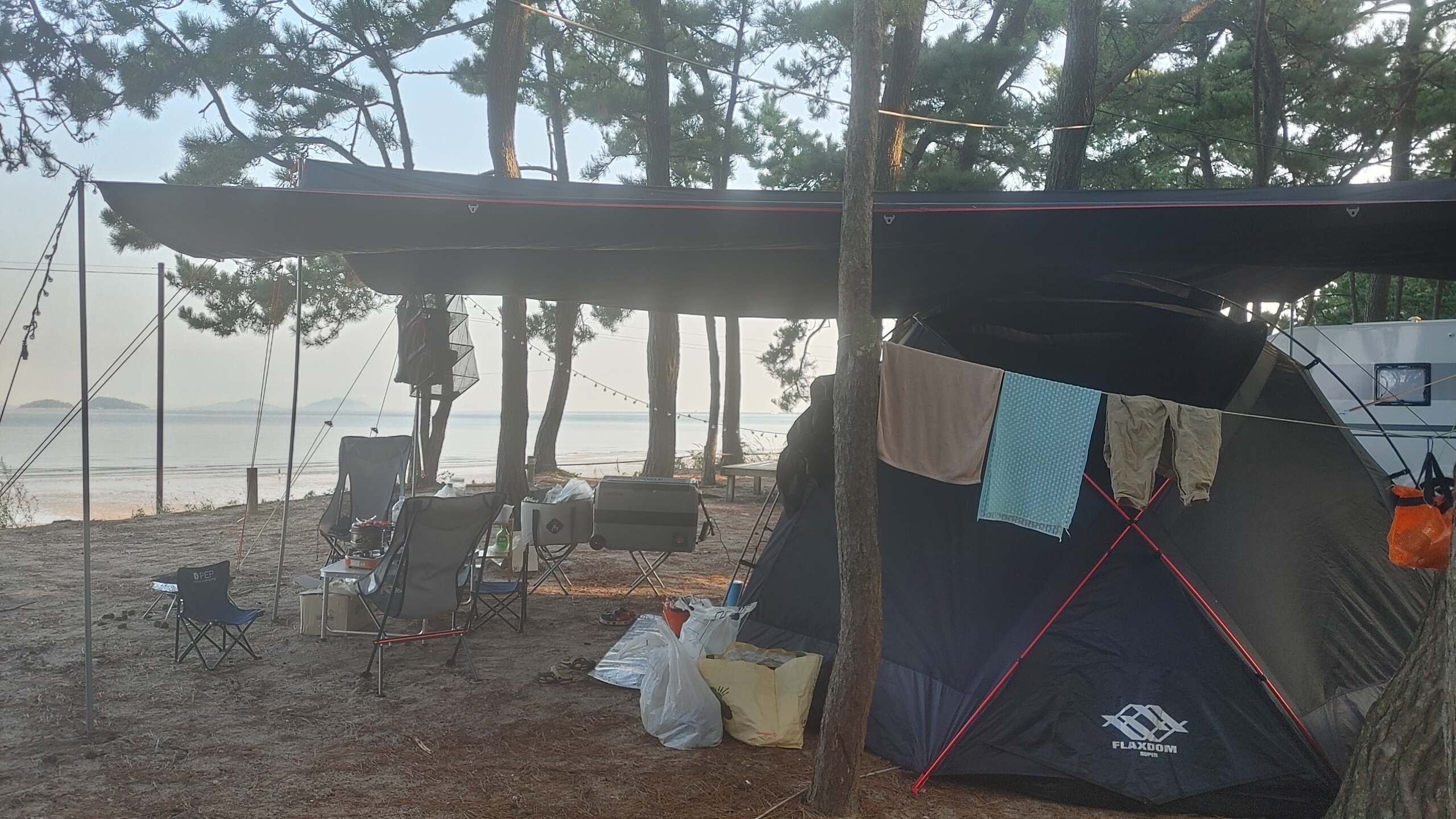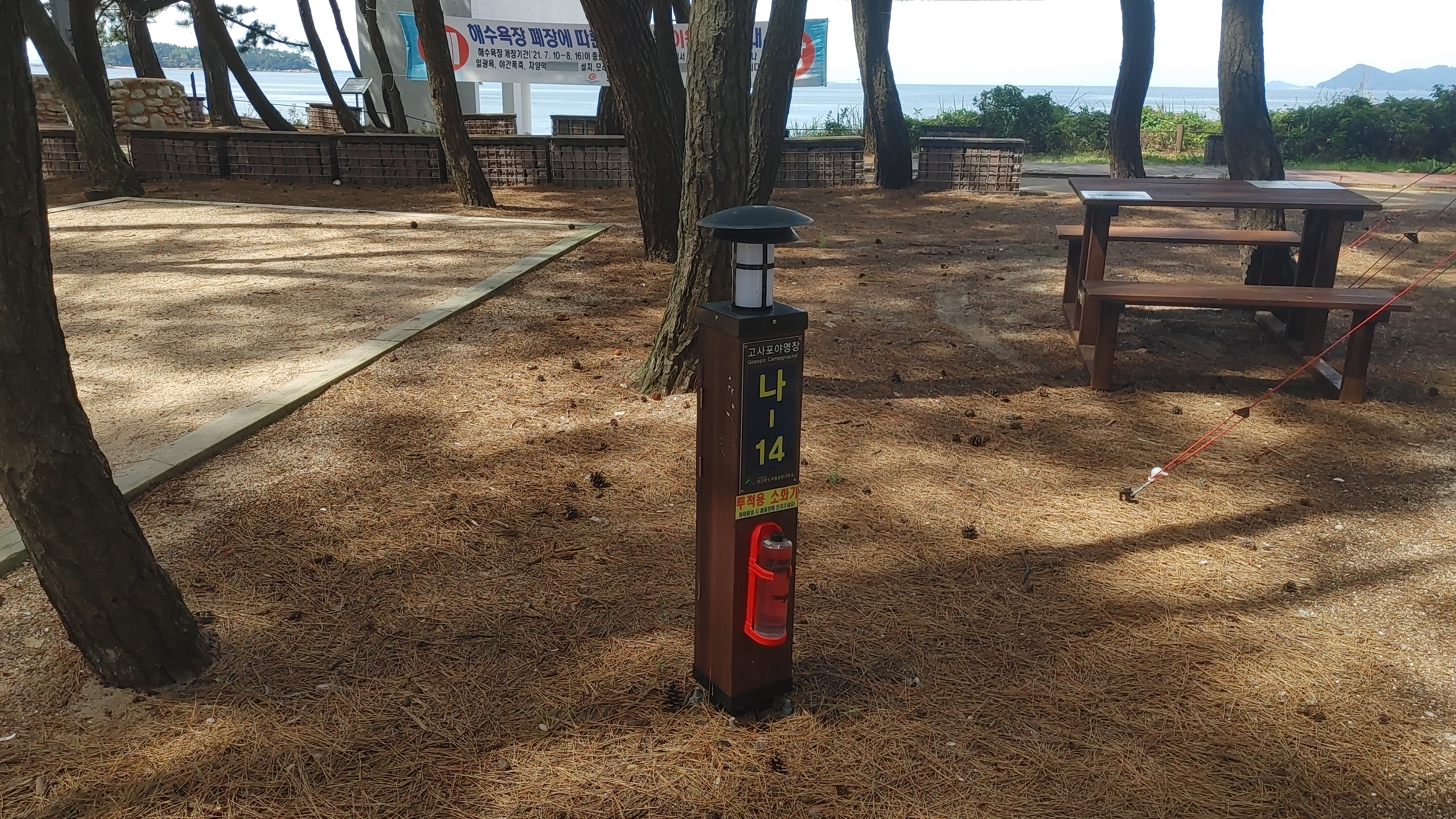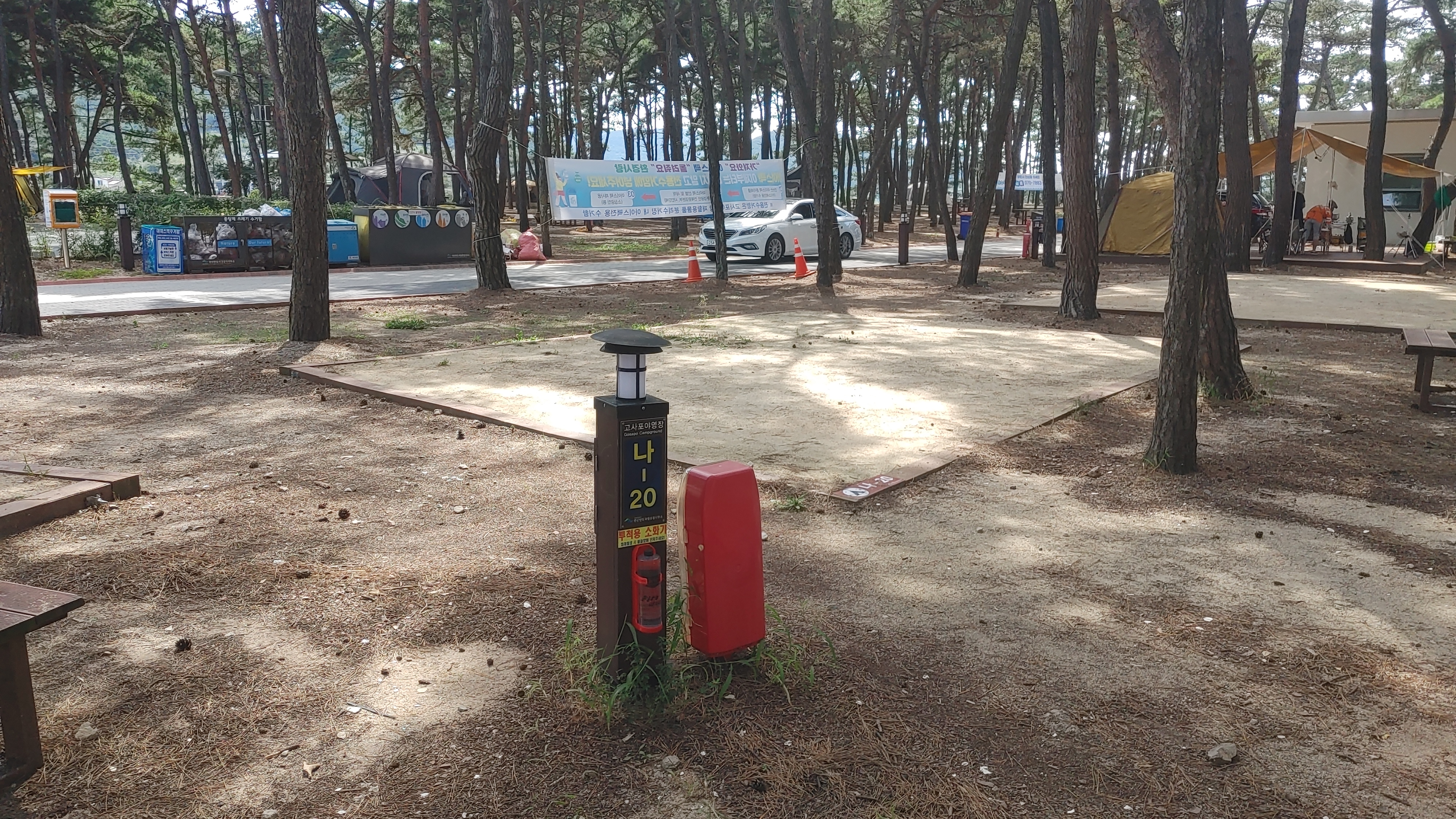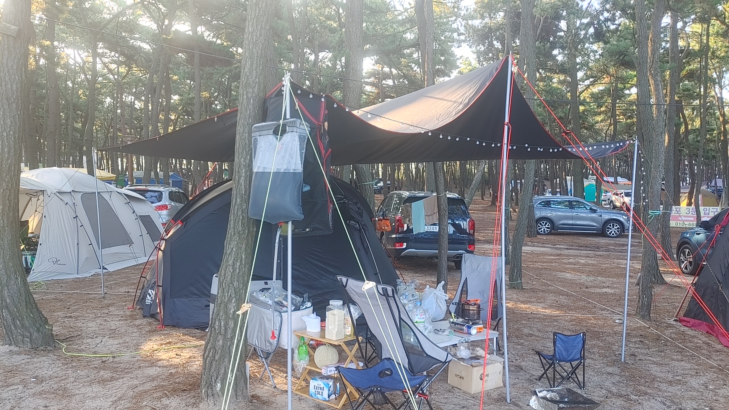 이 곳은 해수욕장 근처고 캠핑장에는 어마하게 많은 소나무로 이루어진 장소입니다. 그만큼 소나무가 많아서 사이트 중앙에 소나무가 있다면 타프 치기가 영 어려운 장소이기도 합니다.